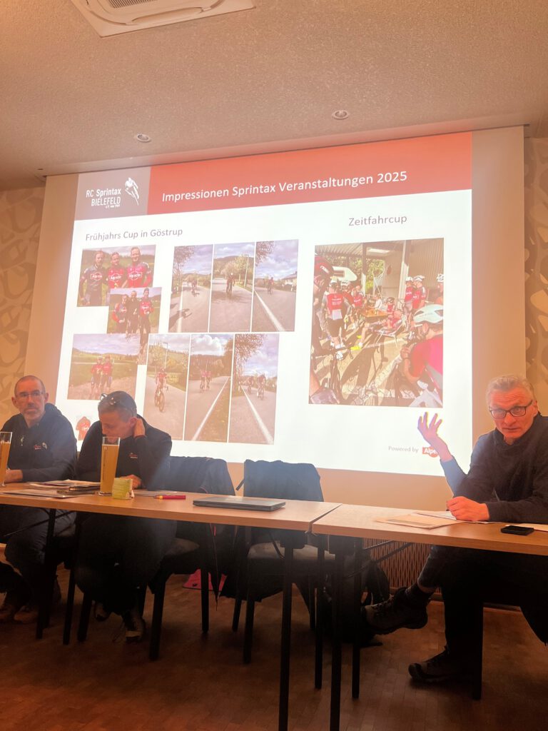 Weiterhin blickten wir auf das vergangene (Sport-)Jahr zurück. Manuela ließ nochmal unsere RTF Revue passieren und Werner stellte die sportlichen Höhepunkte des Jahres dar: Lizenzrennen, Frühjahrscup, Zeitfahrcup, Vereinsmeisterschaft ….